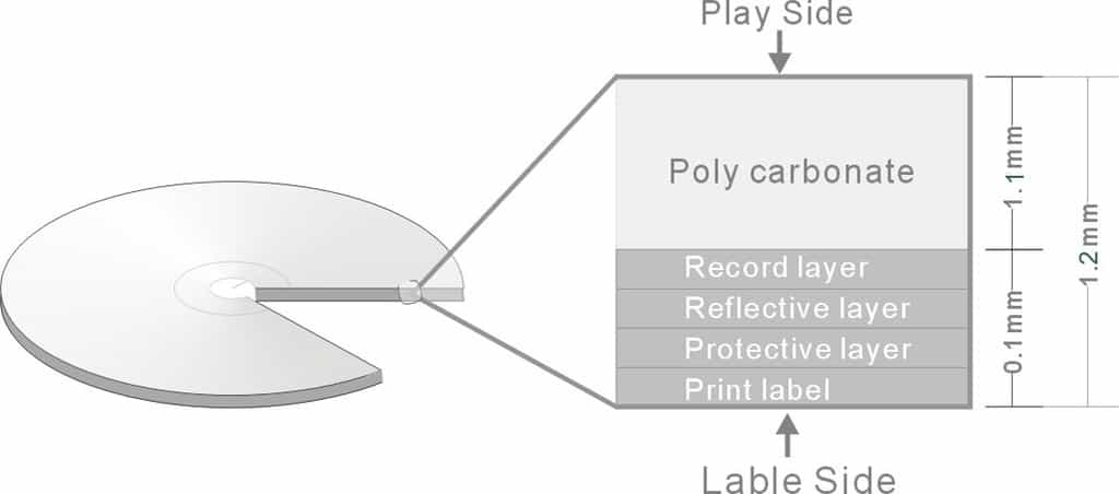 Deze spiegelende laag moet in takt zijn en blijven voor een goed afspeelbare schijf.